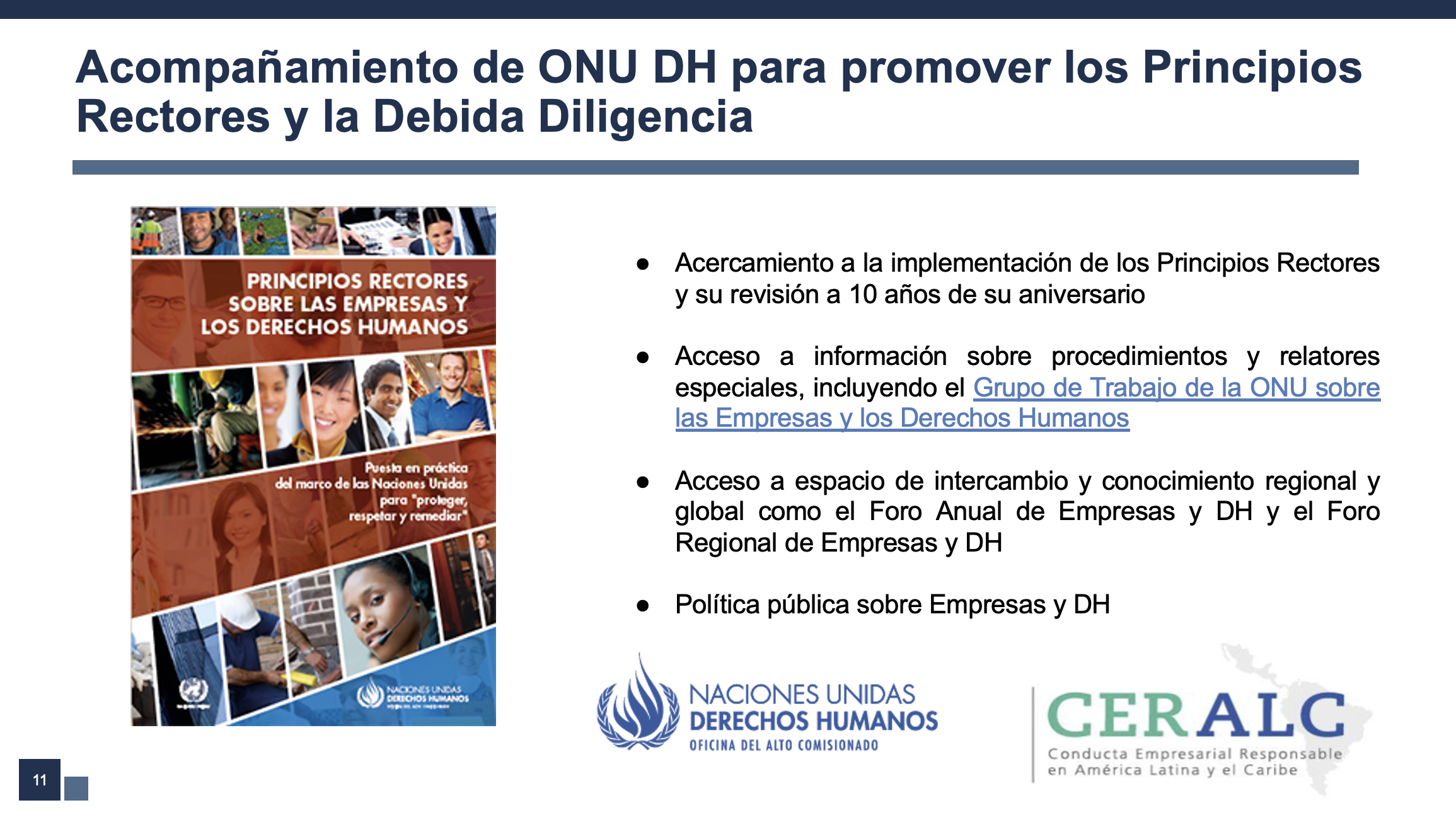 A partir de esta iniciativa, se conformó en 2021 la Comunidad de Práctica sobre Gestión Empresarial de los Derechos Humanos, cuyo objetivo es identificar e impulsar acciones concretas desde el sector privado para implementar procesos de debida diligencia en derechos humanos.