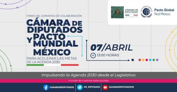 Firma convenio de colaboración Pacto Mundial México y Cámara de Diputados para acelerar las metas de la Agenda 2030