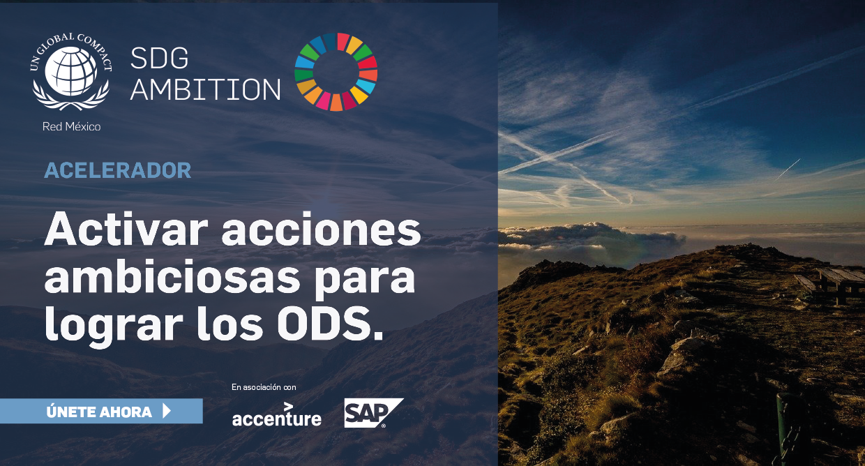 • Programa acelerador de seis meses de duración, gratuito y exclusivo para empresas adheridas a la Red Mexicana del Pacto Mundial cuyo objetivo es permitir a las empresas ir más allá del progreso ya conseguido en ODS y avanzar hacia un cambio transformador, crear resiliencia y posibilitar el crecimiento a largo plazo.